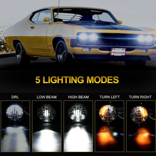 Doxmall 4Pcs Chrome Black 5.75 Inch Headlights with Amber Turn Signal Replacement for 1974 Ford Gran Torino