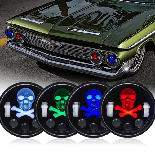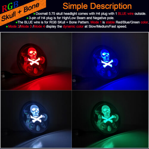 Doxmall 4Pcs RGB 5.75 Skull Headlights With Bone Pattern Compatible with Kenworth W900 Dodge Challenger Ford Gran Torino Peterbilt 352