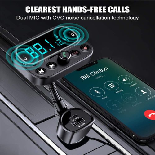 DOXMALL Bluetooth FM Transmitter Car Adapter Transmitter Audio Receiver Dual USB PD Type C Car Charger Support TF Card and U-Disk All Smartphones