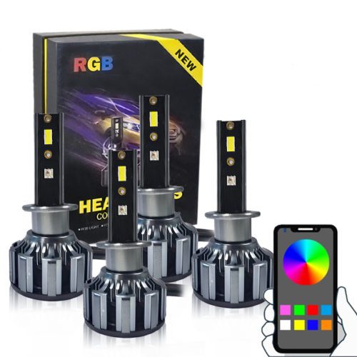 Doxmall 4Pcs RGB H1+H1 Led Headlight Bulb Replacement Fog Lights Set with Canbus Fan Cooling by Phone App Control for 2000 -2005 Volkswagen Beetle 2002-2004 Acura RSX