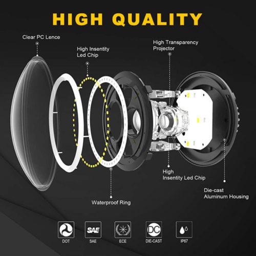 DOXMALL LED Projector 7 Inch Round Headlight Waterproof Blackout Headlamp with Angle Eyes