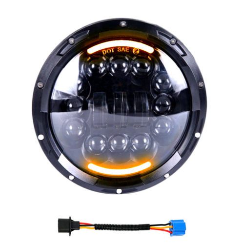 DOXMALL Motorcycle 7inch Round LED Headlights Motorcycle High/Low Beam Headlights Amber/White DRL 1Pcs