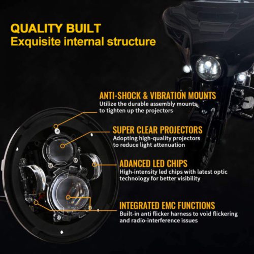Doxmall 7″ LED Headlight For Motorcycle Projector LED Light Bulb For for Glide Series, Softail Series, Sport Glide, Ultra Limited, Street Glide Special, Road Glide Special, DOT Approval, Black