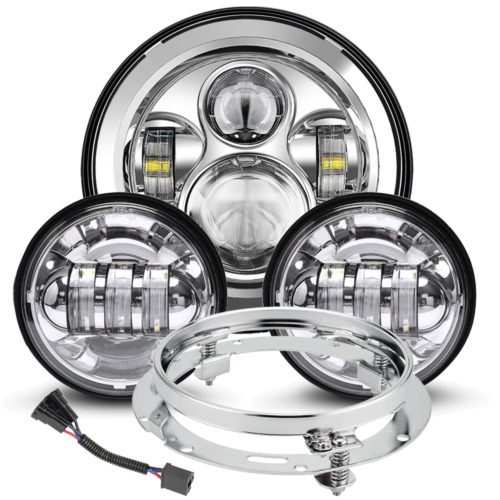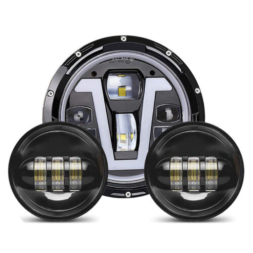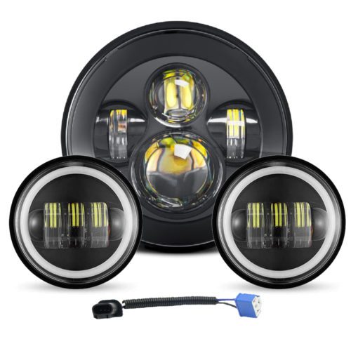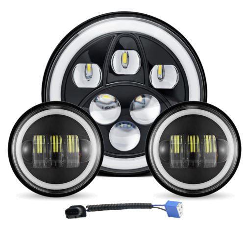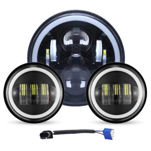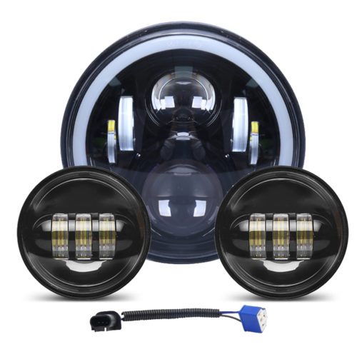 DOXMALL Motorcycle 7″ LED Headlight with 4-1/2 LED Passing Fog Lamps with DRL Halo Lighs and H4 Adapter