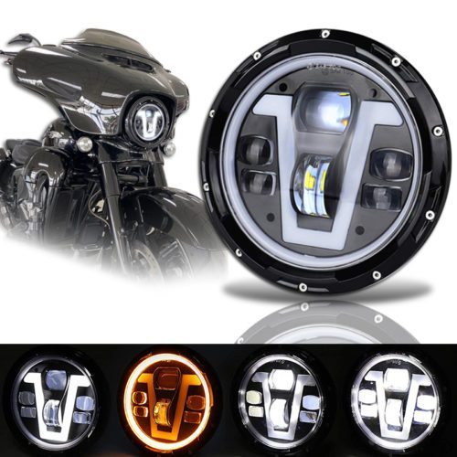 DOXMALL V Type DRL 7 IN Motorcycle Headlight with Halo Ring Turn Signal for Street Glide Road King