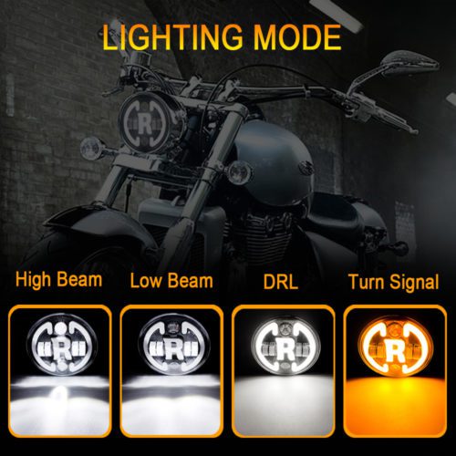 Doxmall 7 Inch Fancy R Symbol LED Headlight Harley Daymaker Headlamp Projector with Turn Signal