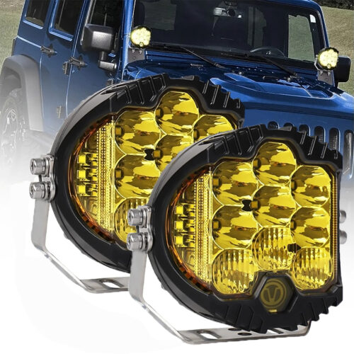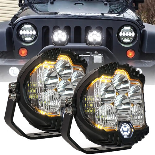 2PCS White and Amber Jeep Wrangler Driving Light 60W Sealed Beam Spot Light 5300 Lumen Led Work Light for 4×4 Offroad SUV ATV Wrangler JK TJ