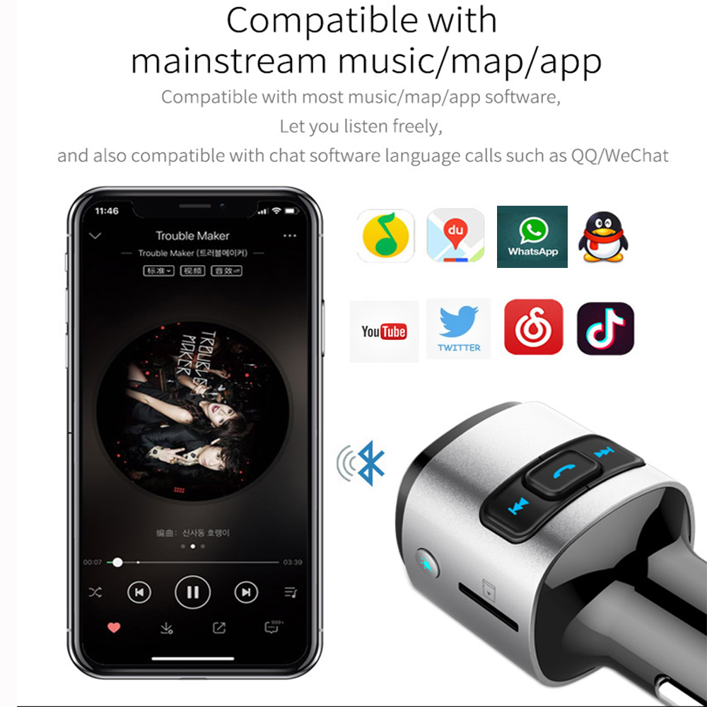 2.This Bluetooth fm transmitter supports Siri/Google Assistant for voice guidance, such as sending texts, incoming phone numbers or driving directions. Ensure your safety while driving.