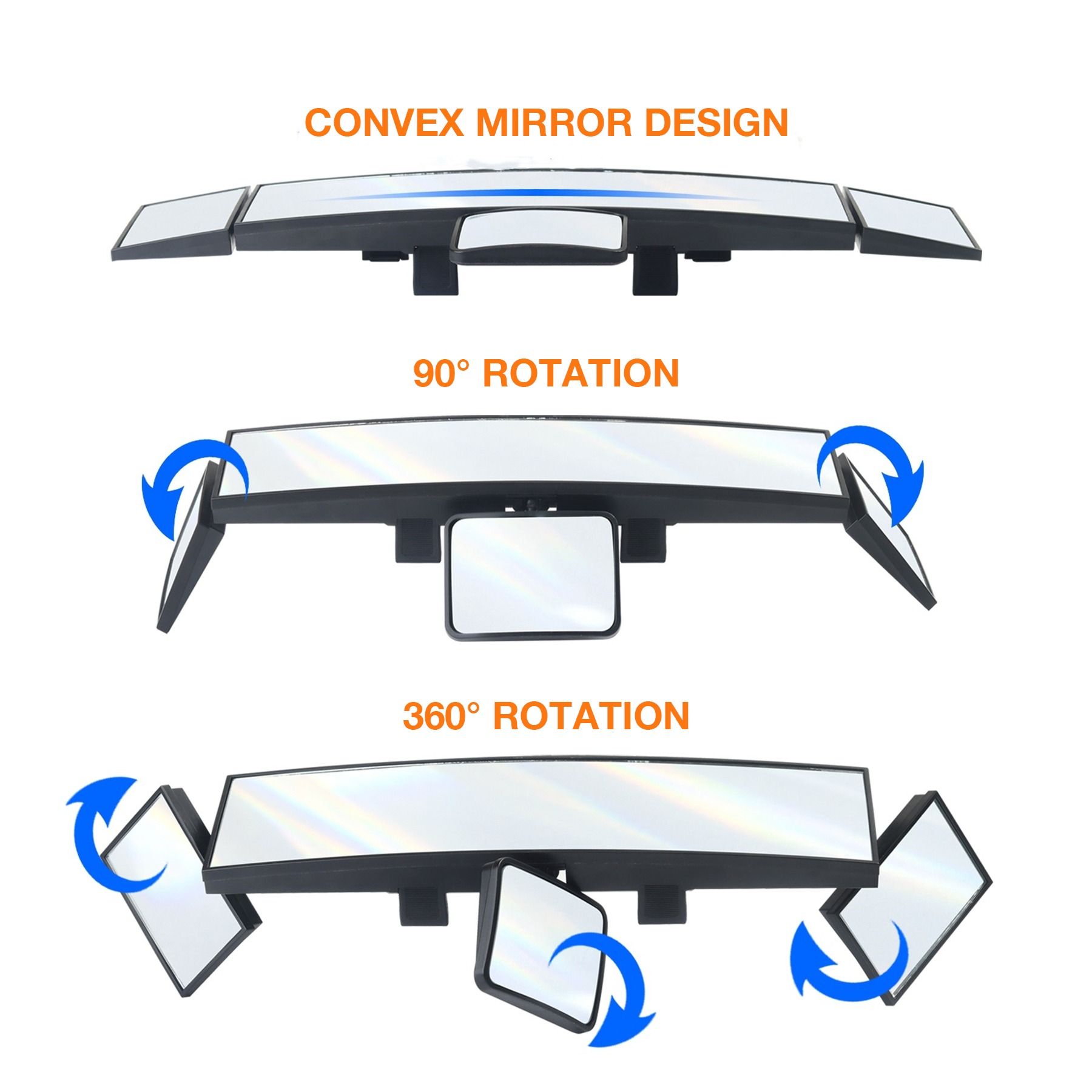 [360°Adjustment] The tri-fold panoramic rearview mirror offers 360-degree adjustment. Adjust the mirror for perfect vision and eliminate blind spots.