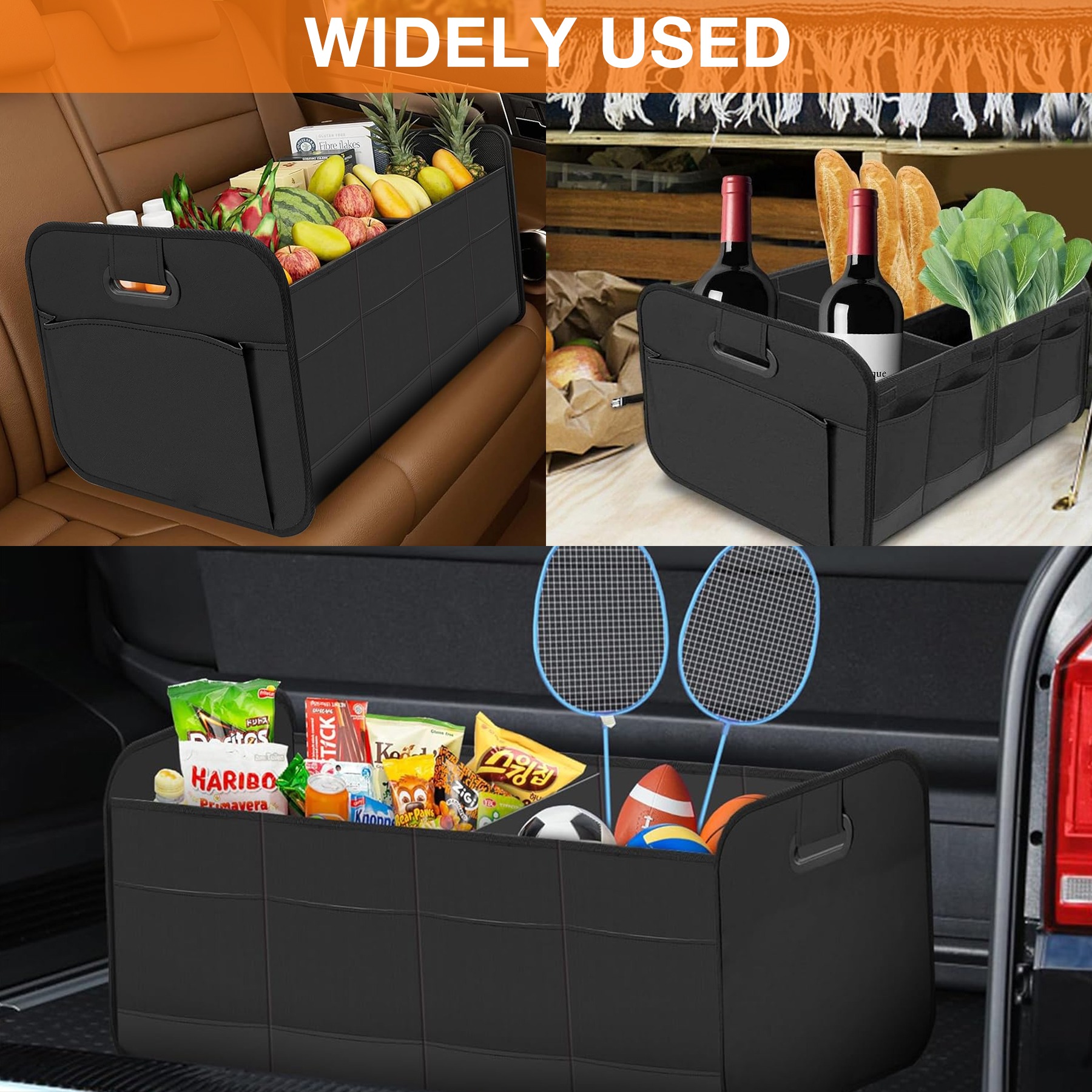 [Super Durable] This foldable car trunk organizer is made of durable Oxford fabric and features reinforced stitching in high-wear areas for exceptional durability.