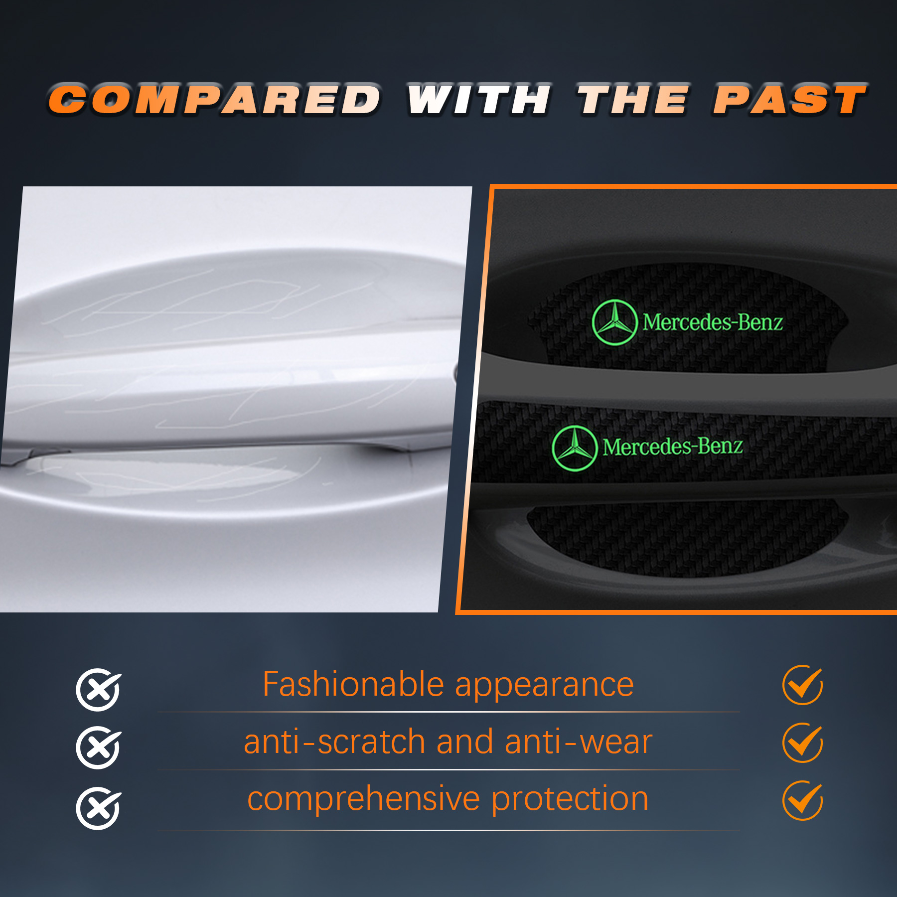 [Strong Practicality] This luminous Mercedes Benz door handle protector is made of carbon fiber, which is strong and durable, can better prevent your car from being scratched, and this door protector will not fall off, fade, crack or deform.