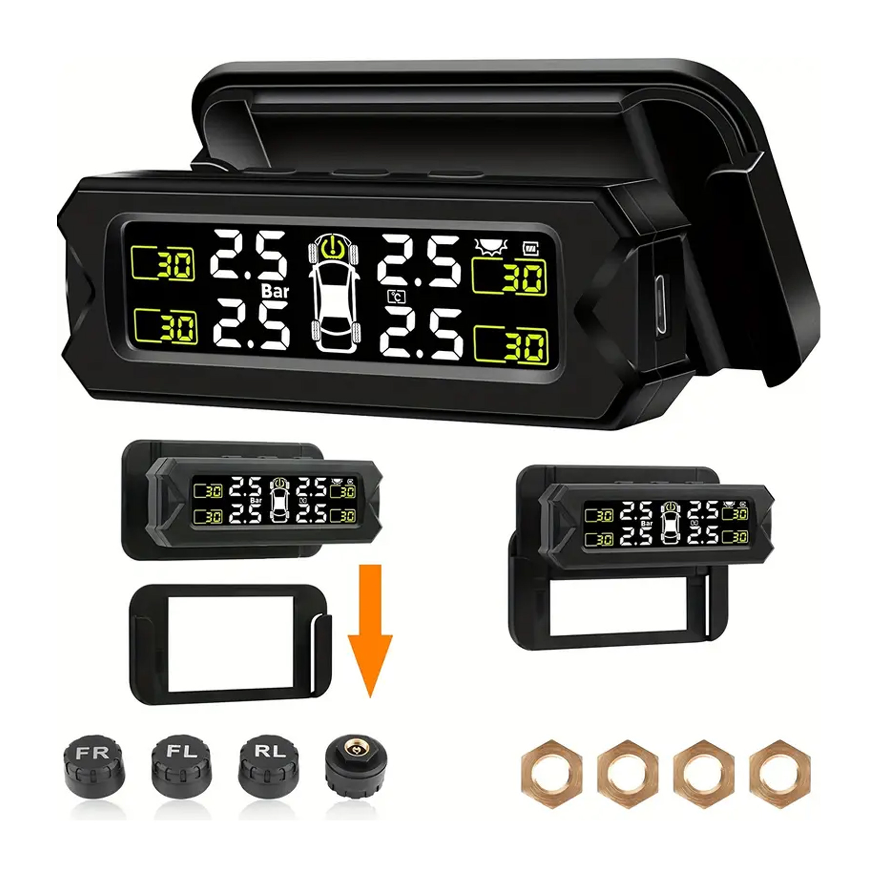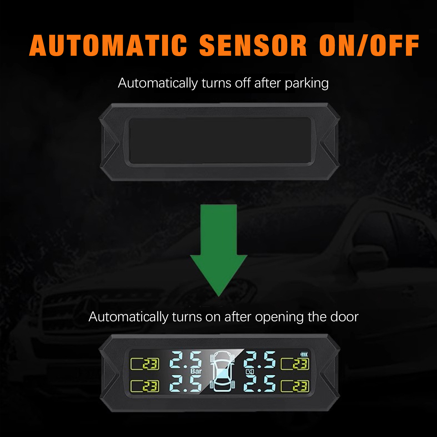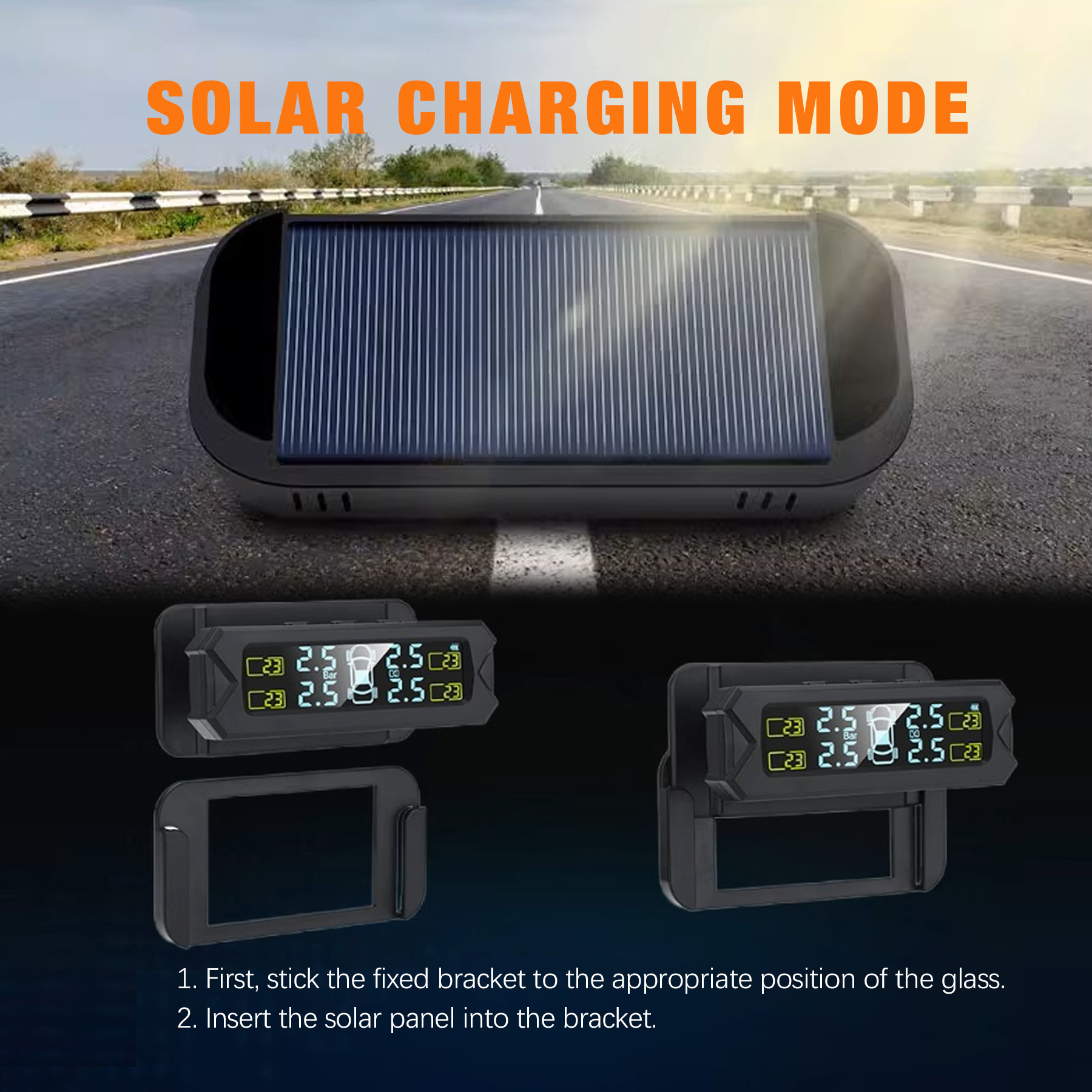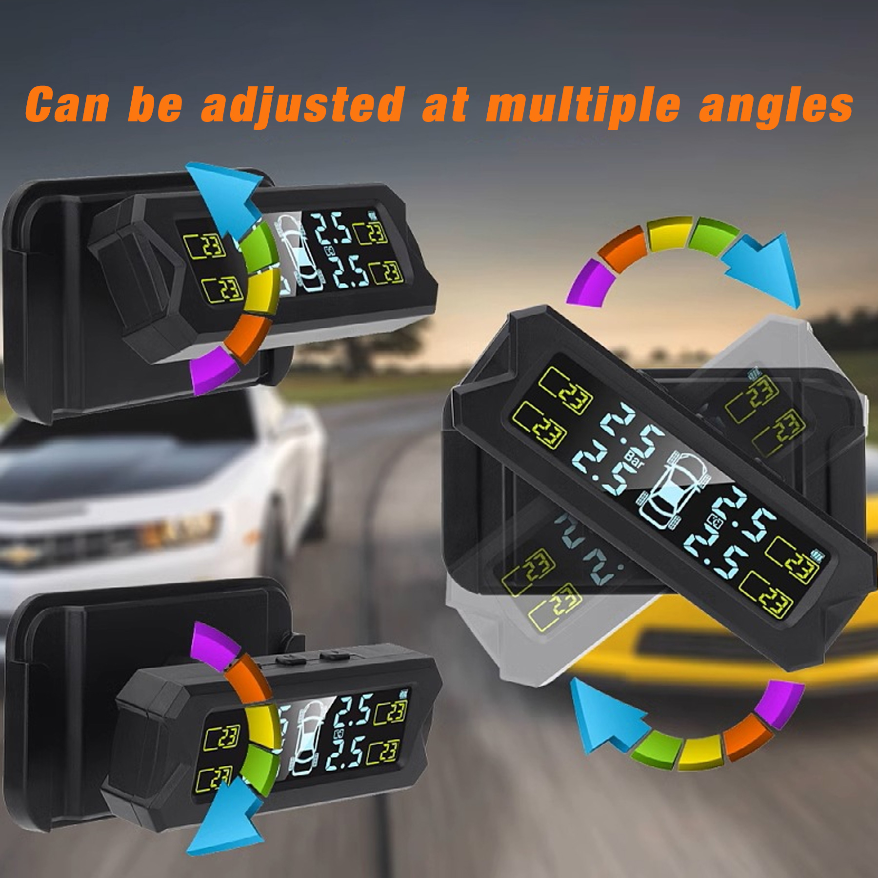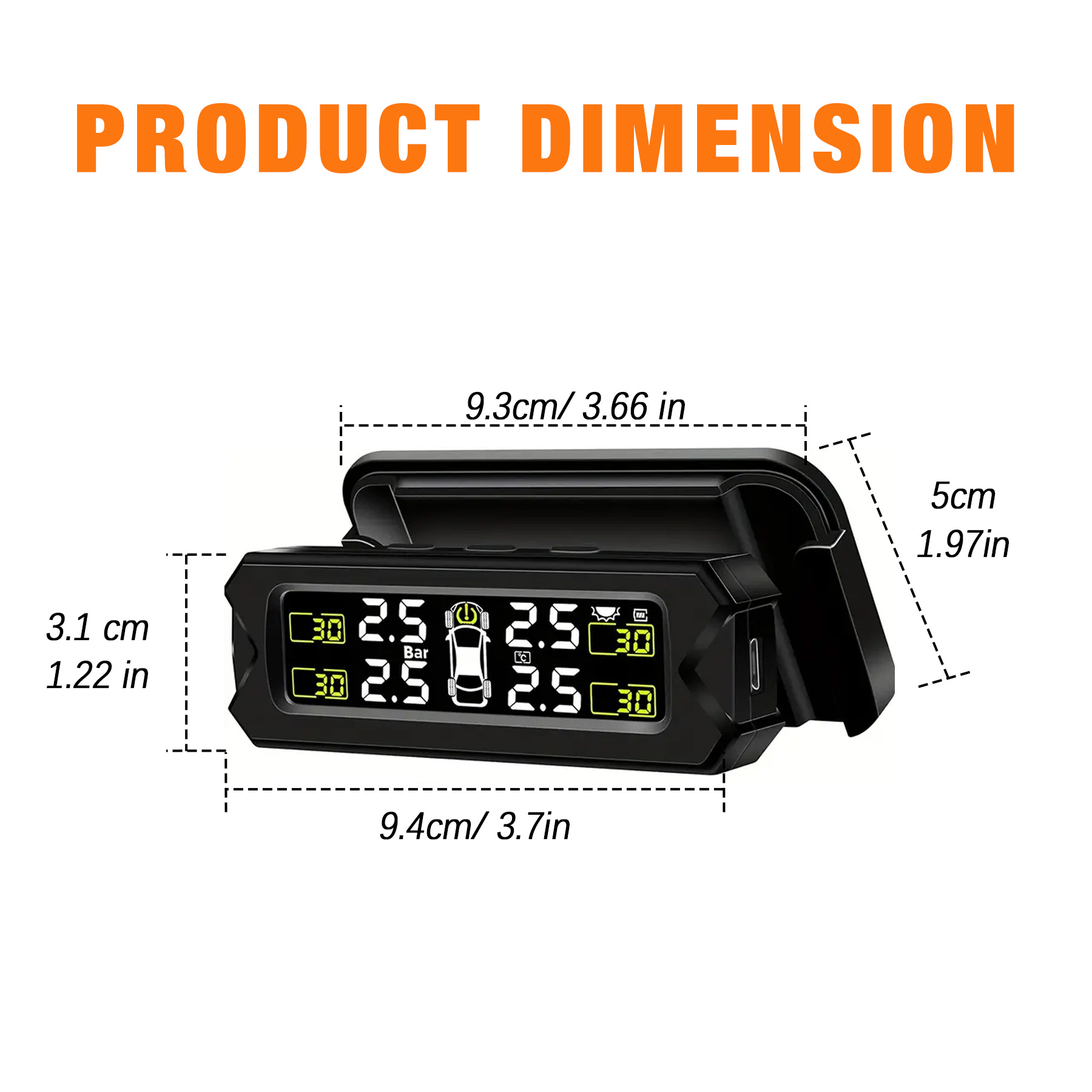 【Digital screen】The tire pressure monitoring system sensor TPMS has an LCD wide-angle digital screen, clear data, no need to lower your head when driving, will not block your sight and save space, providing you with a safer way to view the tire pressure monitor.