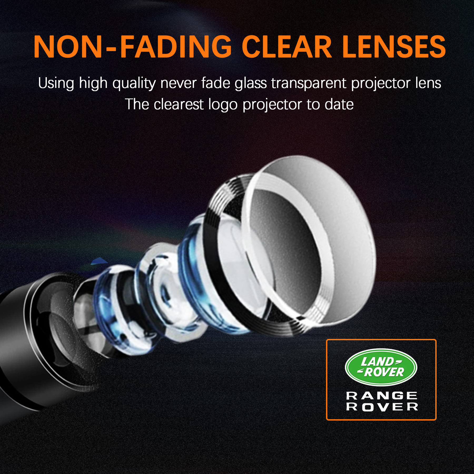 [HD Projection] Our car door projection glass chips are far superior to previous film chips. This door projector will never fade, so you can enjoy a clearer and brighter Land Rover logo projection.
