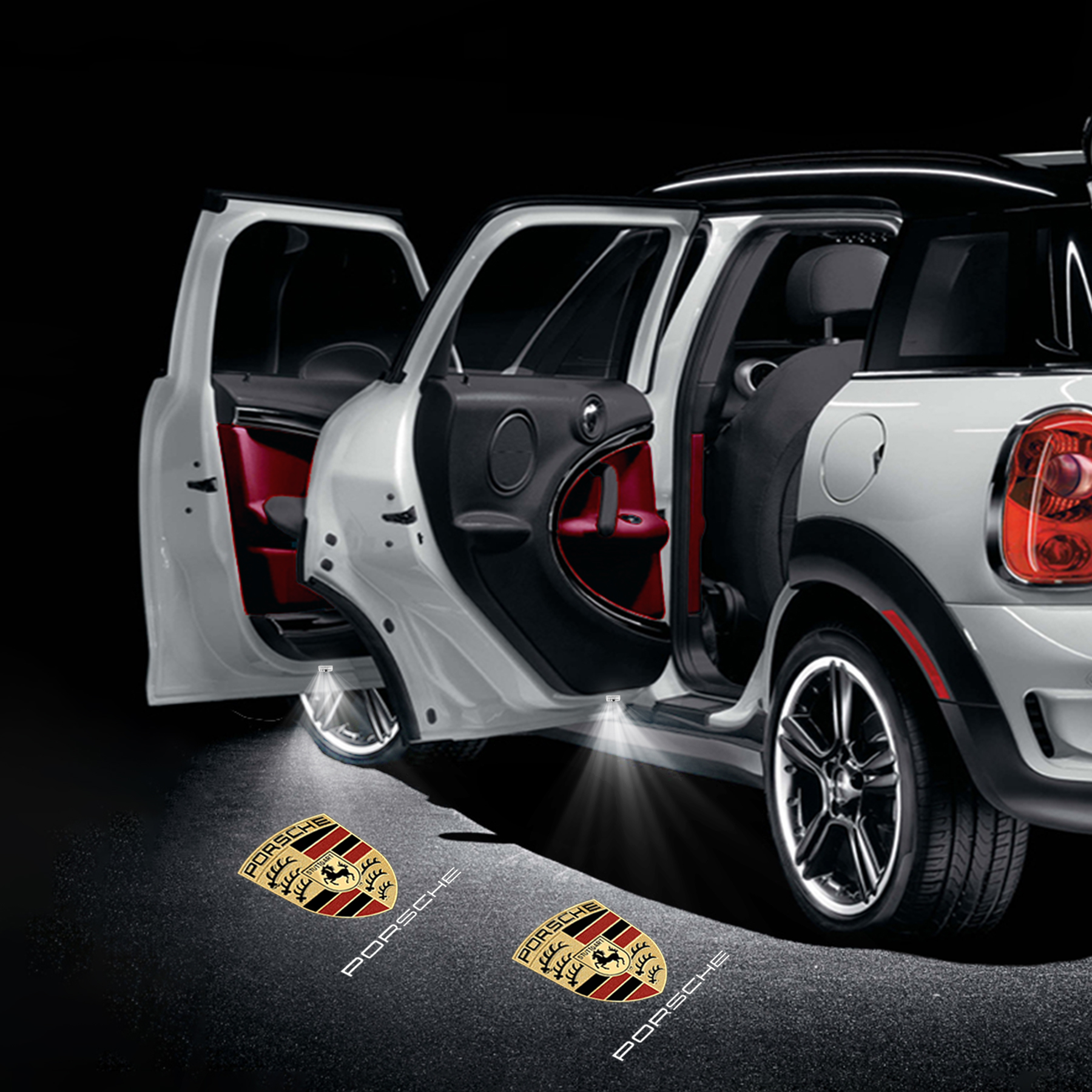 2 pcs x Porsche logo Shadow Lights (If you want to install on 4 doors, you need to buy two sets).