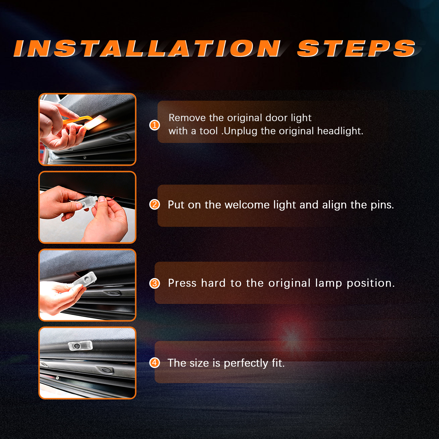 [Seamless Installation] Directly replace the original door lights of your car, no need to drill holes or cut wires to enjoy the super bright projection lights.