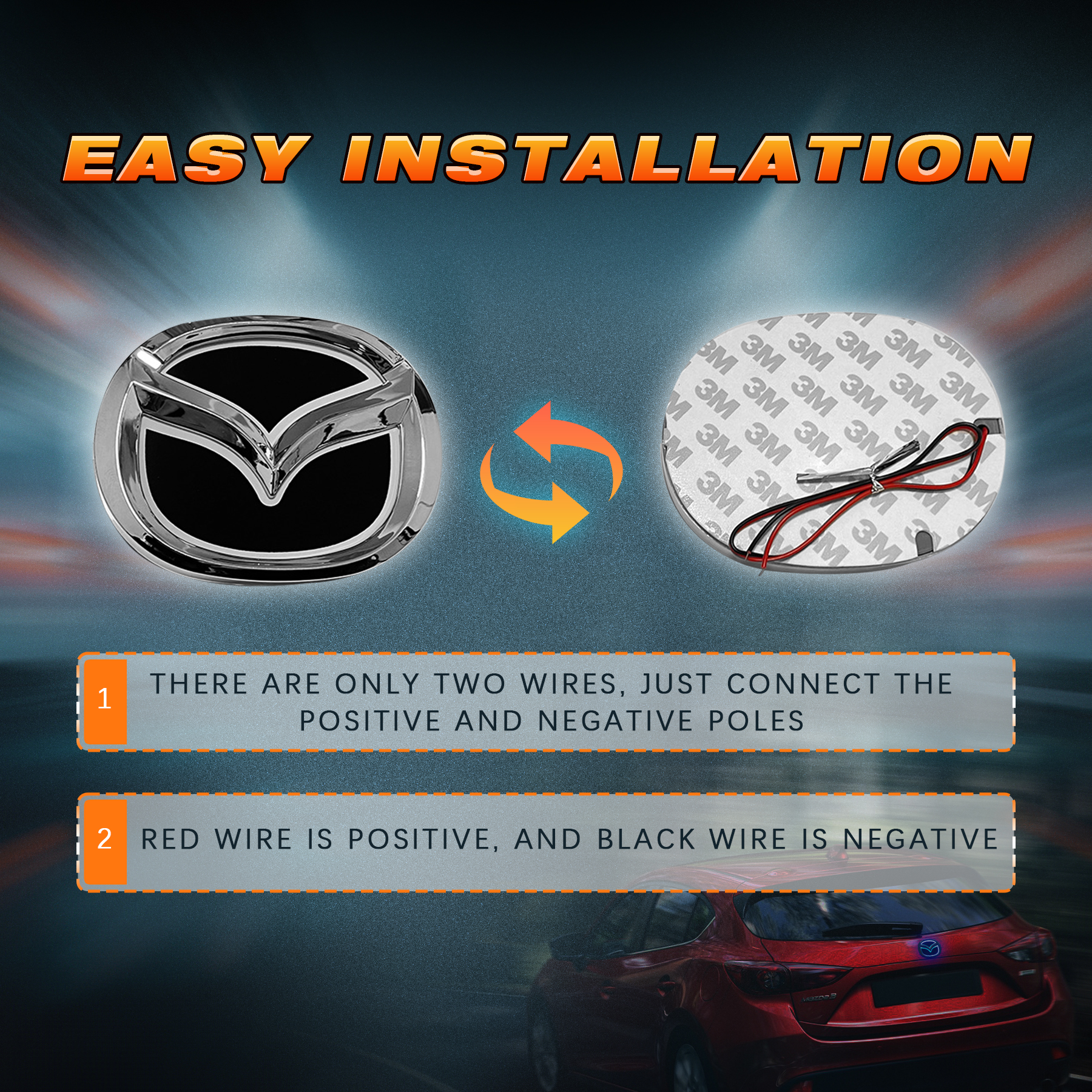 [Installation Notes] The illuminated Mazda emblem needs to be connected to the car power supply. Before purchasing, please make sure your Mazda logo has a suitable place to pass the wires through to connect to the power supply. If not, you may need to drill holes to allow the wires to pass through.