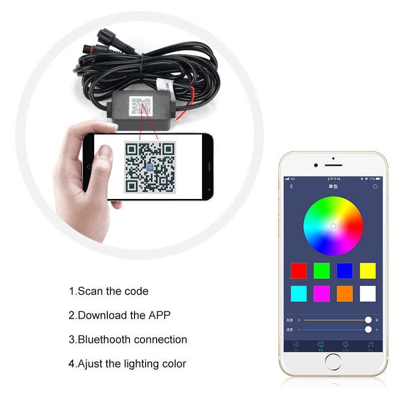 - The headlight color is white light, and the colorful light can be used as fog light.Be sure to download the APP that controls the light before using the Bluetooth remote control