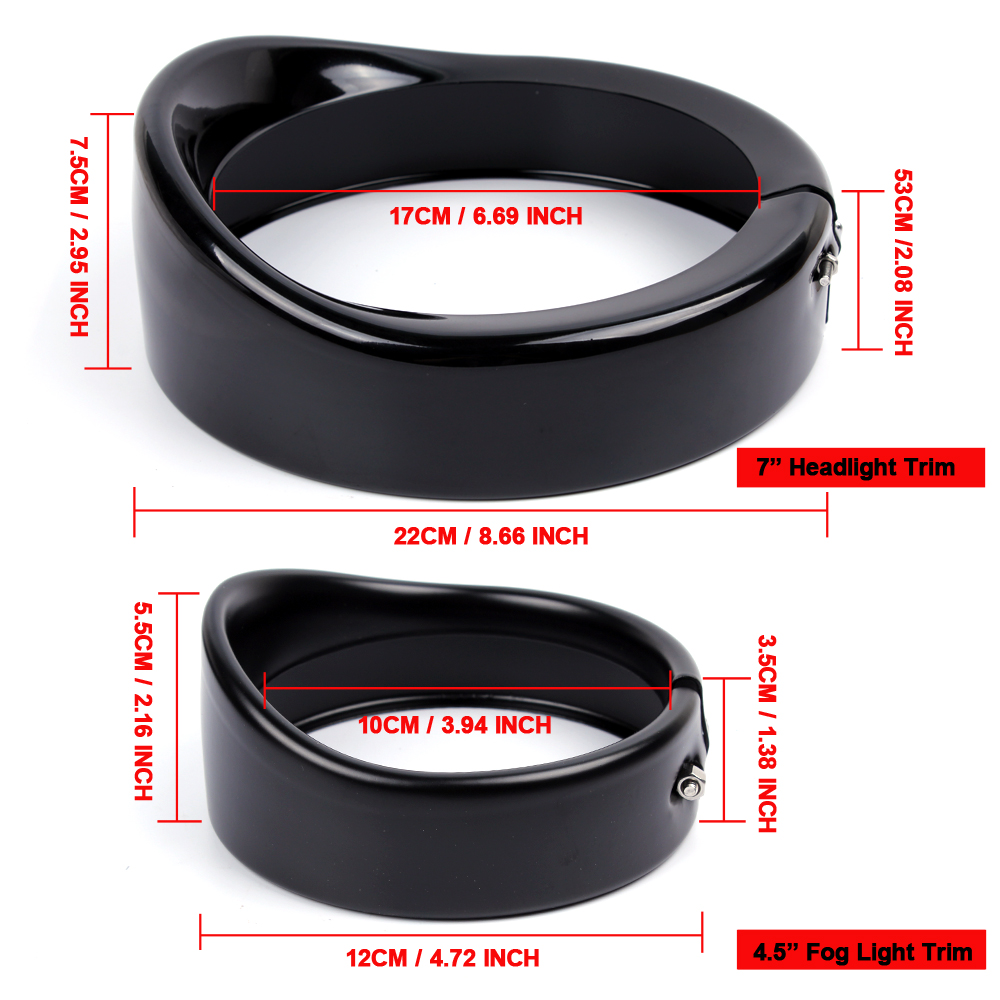 Package Included: 1Pcs x7 inch headlight trim + 2Pcs x 4.5 inch fog light trim