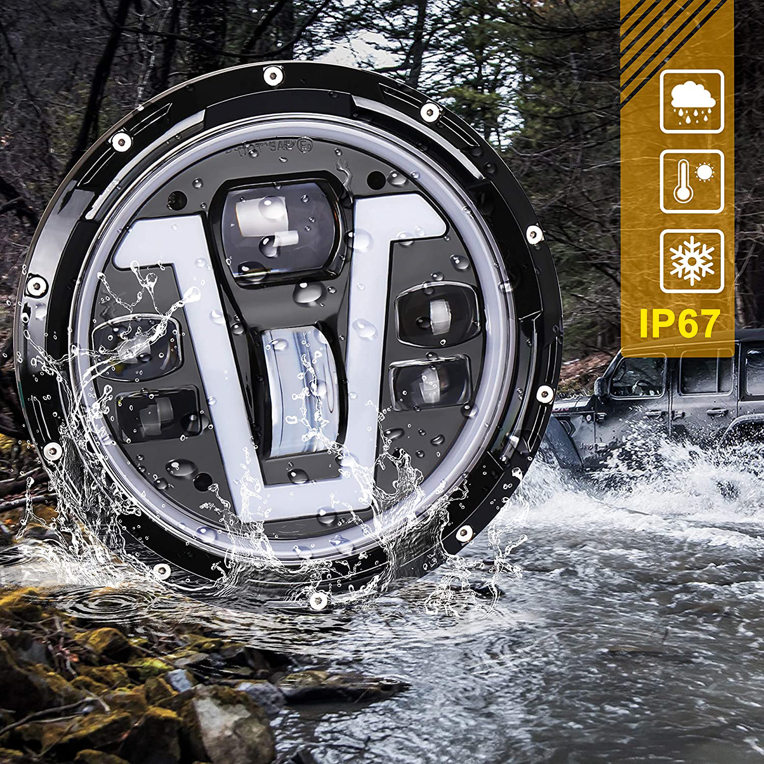 - Durable & Advanced Cooling Housing : Made of die-cast aluminum housing, Building a Shock and vibration resistant construction. Shock-proof and IP67 waterproof. DOT,SAE,E-Mark approved, work well in a variety of weather conditions.