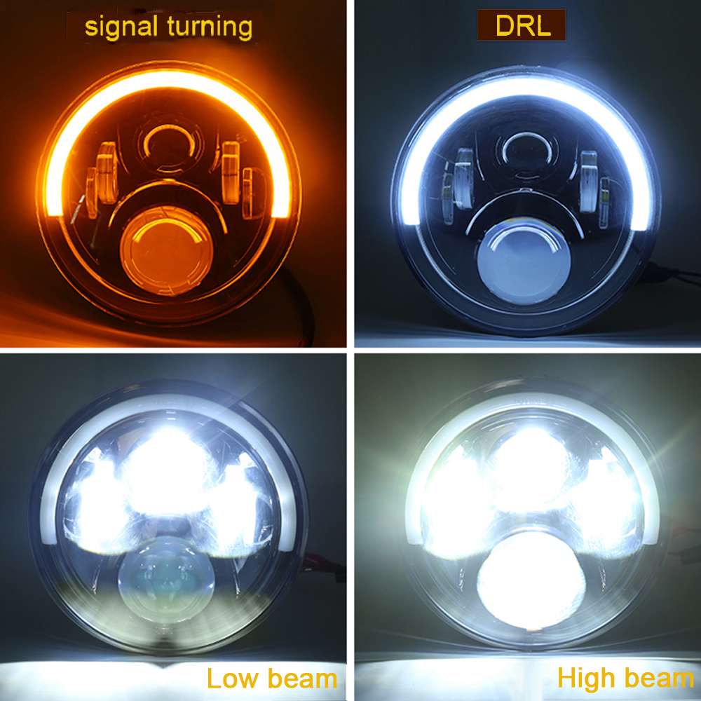 - 【BEST CHOICE 】7 inch motorcycle headlight with DRL half halo angle eye ring looks unique. White DRL and Amber light included. DOT approval, legal to drive on road. This is the best choice for upgrading your motorcycle, which makes your motorbike a new sharp look.