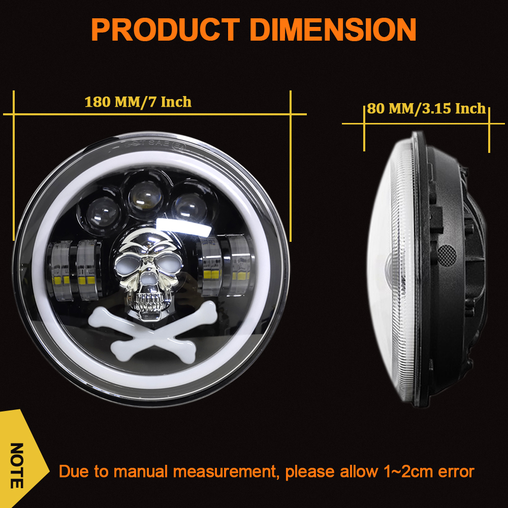 1Pcs x 7 inch Skull Headlight