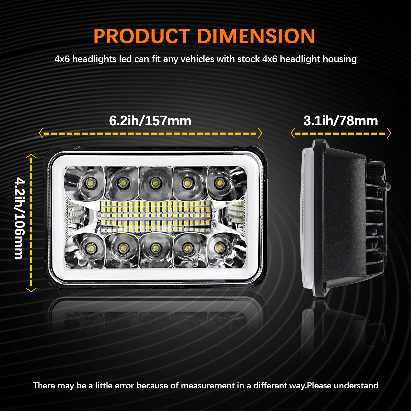[DOT APPROVED] Passing the DOT and SAE APPROVED, meaning it’s safe and legal when driving your car with our 4×6 Led Headlights on road.