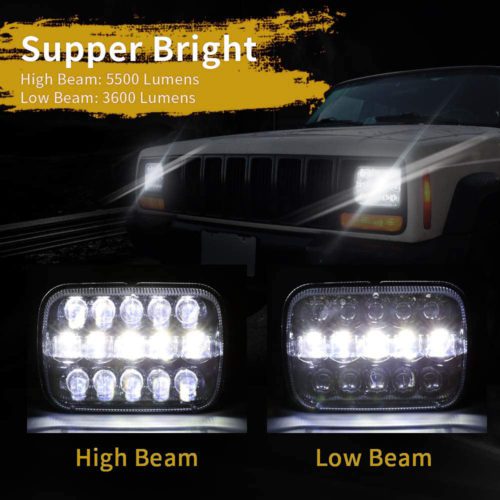 1.High Power Headlights: This upgraded 5×7 headlight features high power, 95w/pcs (High Beam: 30LEDX15W, High Beam: 30LEDX15W), which is much brighter than other universal LED headlights.