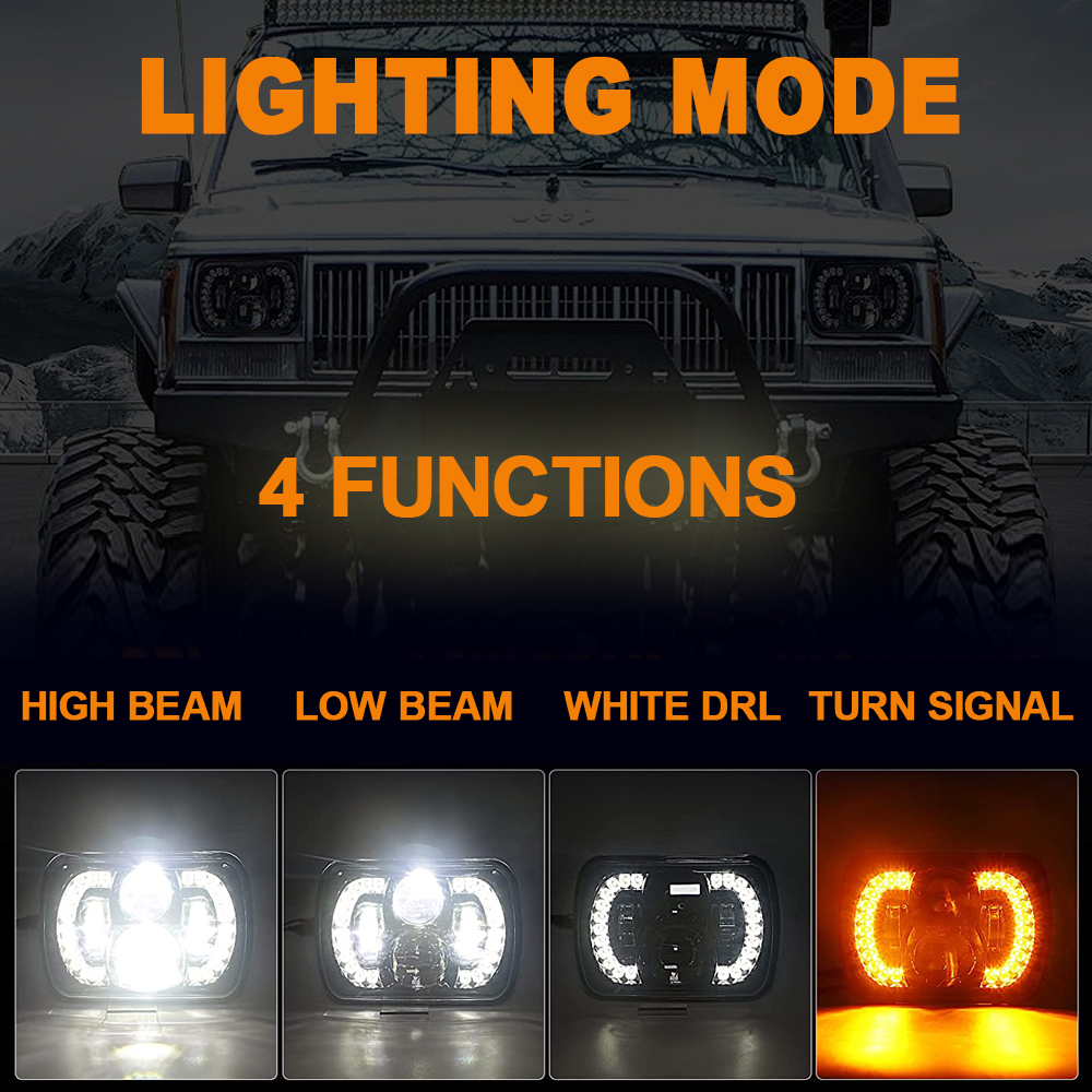 - Fitments: These 5×7 headlights fit any vehicles with 5×7 inch ( also known as 7×6 ) Square Headlights, also Compatible with Jeep Cherokee XJ 1984-2001, Jeep Wrangler YJ 1987-1995, Comanche MJ 1986-1992.