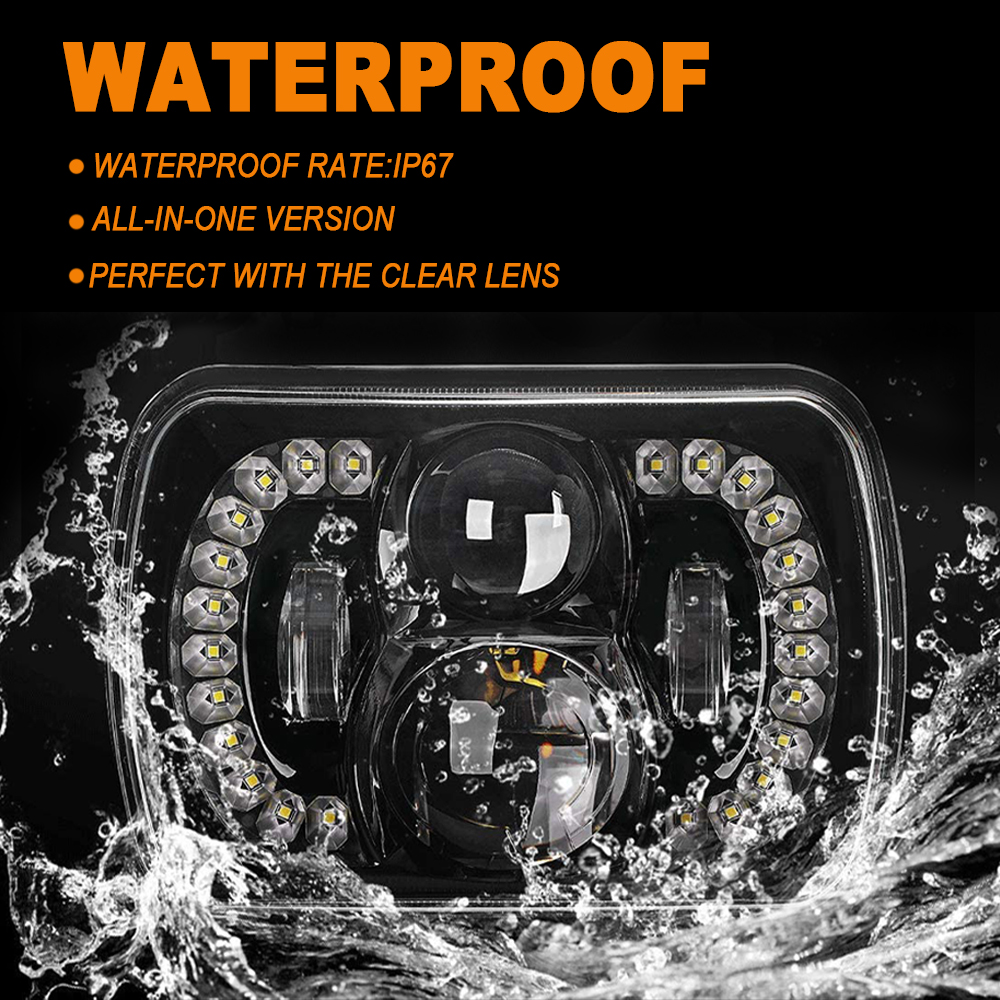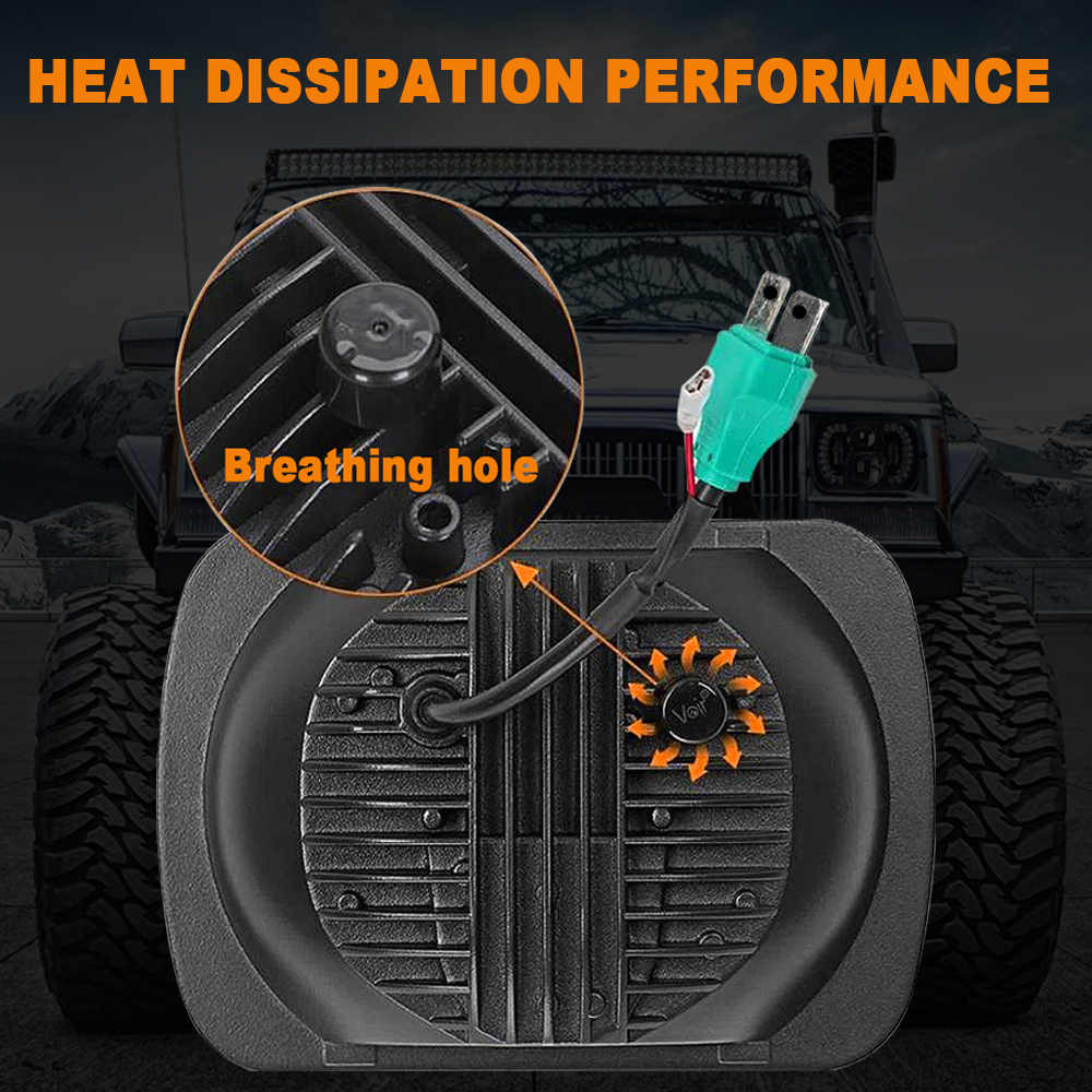 - Fast Heat Dissipation: 5×7 LED headlight is made of thick die-cast aluminum alloy cover, which has an increased area for better heat dissipation. The IP67 cover is resistant enough for waterproof and shockproof, which is contributed to a working life of 30,000 hours.