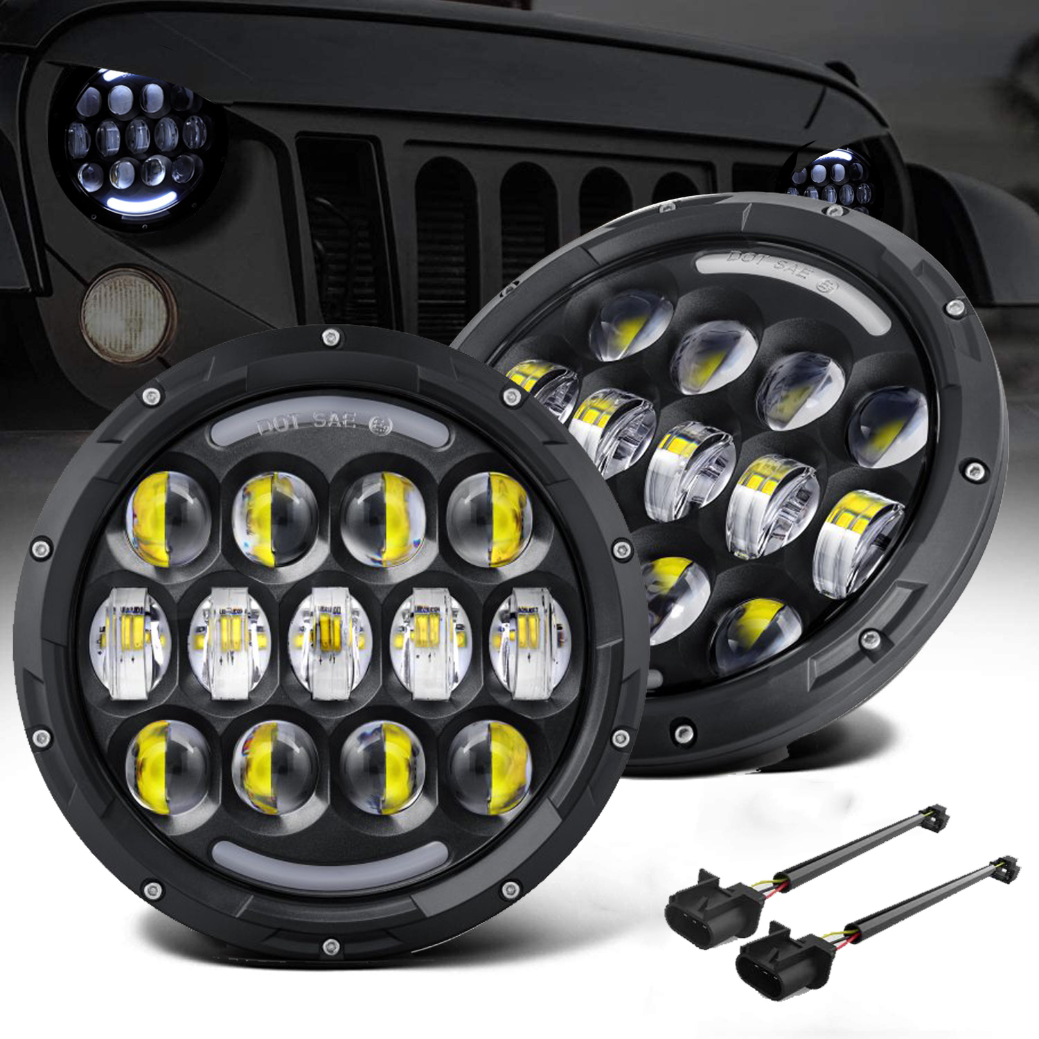 - 2Pcs x 7 inch LED Headlight
