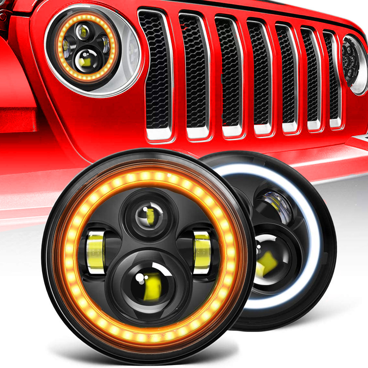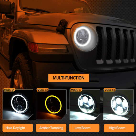 ★Headlight with Daytime running light & Amber Turn Signal Light & Hi-Lo Beam. Headlight portion is plug and play.Halo rings need extension for ground or power depending on vehicle.