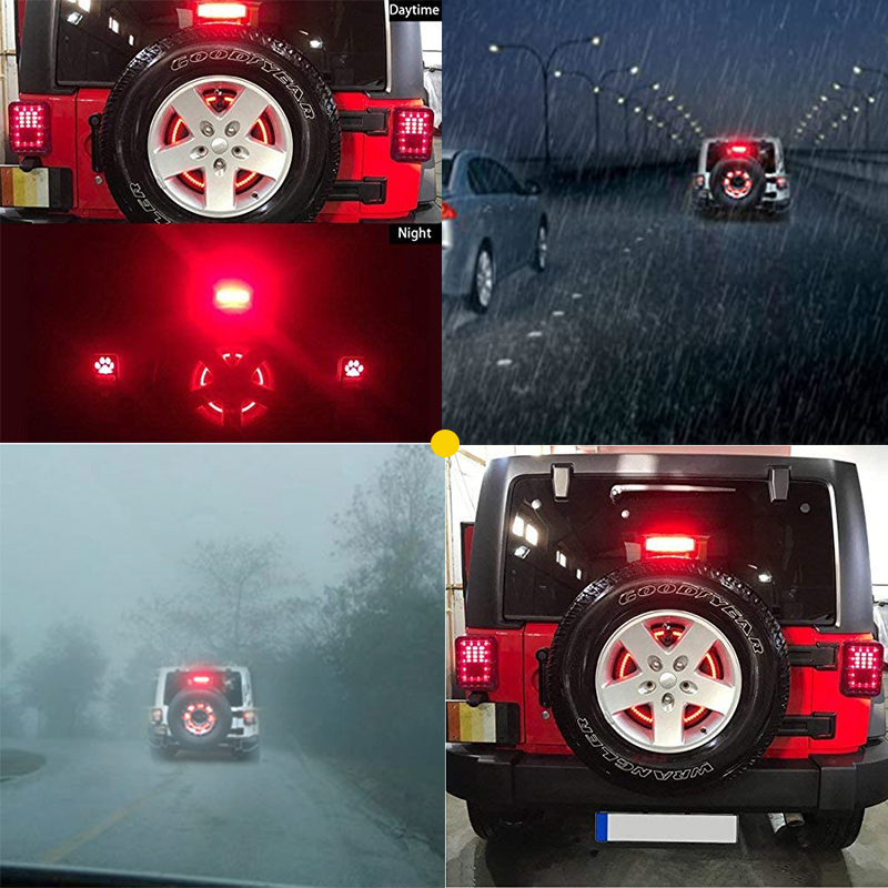 - LED Brake Light+Spare Tire Brake Light- Fits 1997-2017 wrangler JK JKU YJ TJ with all 16 to 20 Inch Rim Diameter Wheels,Works with 5×5, 5×4.5, 5×5.5 inch Lug Patterns.