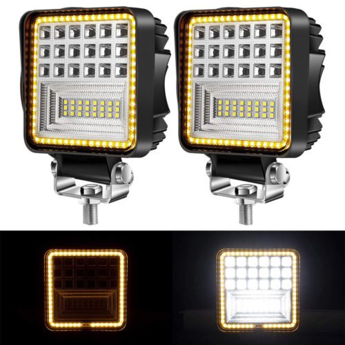 - Outstanding Brightness: These LED cube work lights are designed with High-Intensity LEDs, 6000K bright cool white spot light and 3000K bright amber side shooter flood beam, 90W/Pair & 4000LM/Pair output, excellent for revealing the overlooked corners when traversing trails after dusk.
