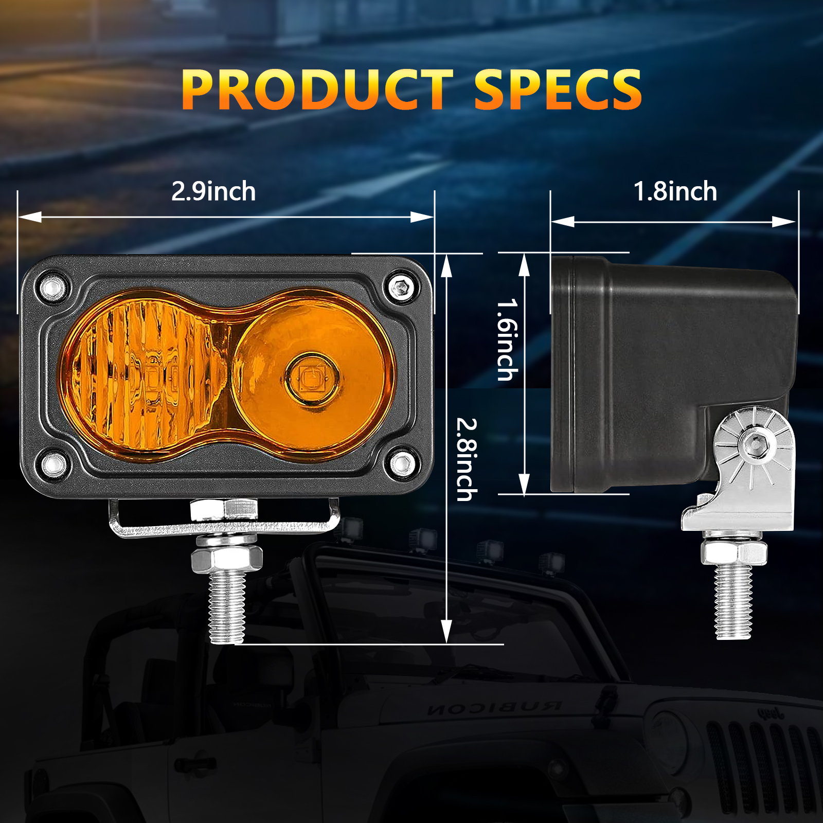 Waterproof: Amber off road light with IP68 protection level and high-precision design, allowing you to drive in any weather, such as rain, fog, snow, and sandstorms, without affecting use.