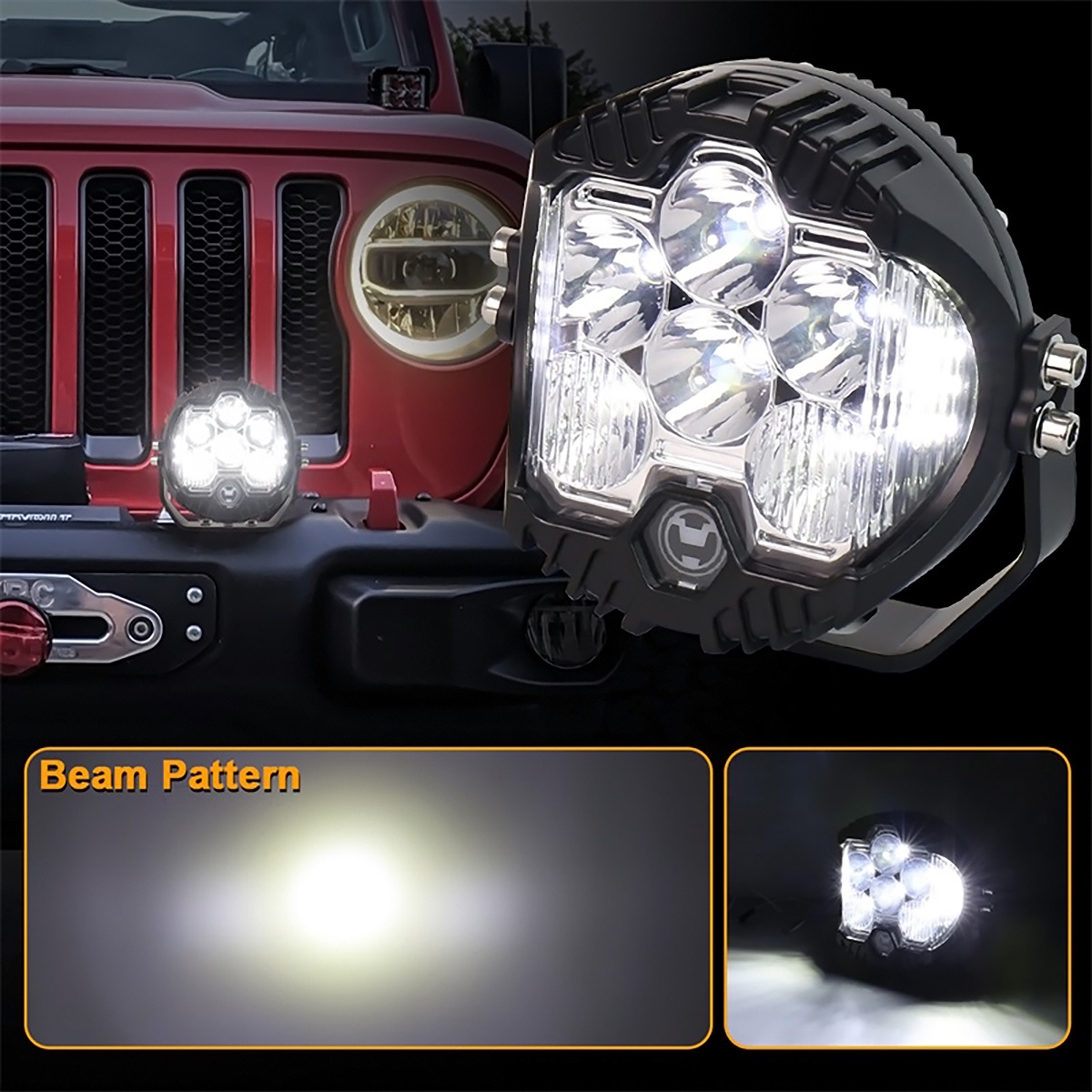 [3 Lighting Patterns] DOXMALL 5 Inch Led Offroad Pod Lights are made of advance led chips, can produce up to 50 Watts and 5000 Lumens of brightness. They have 6000K White Driving Beam lighting mode; Amber DRL Halo Ring lighting pattern; and Driving+DRL lighting mode.