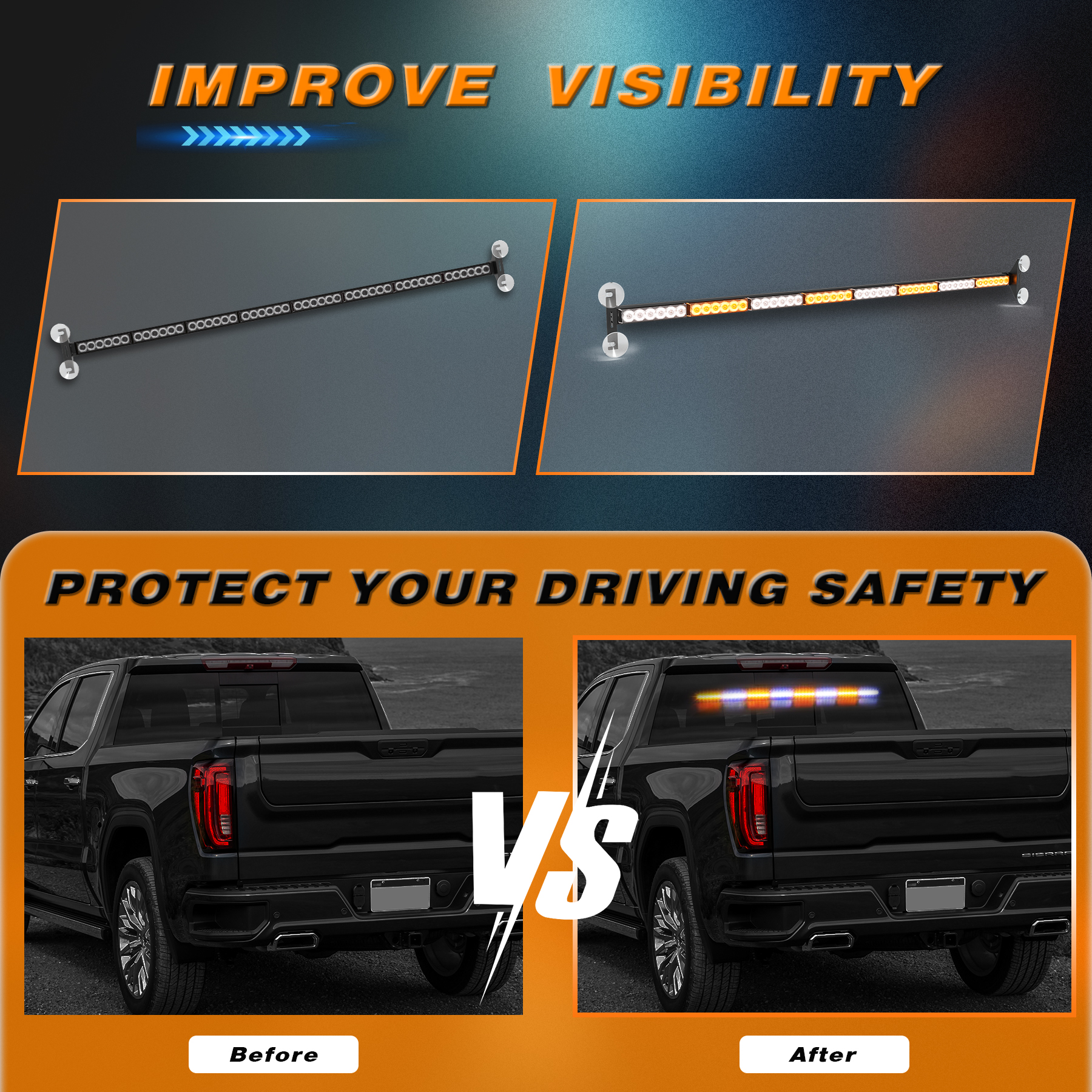 [High Visibility] Truck safety strobe lights use 48 high intensity led lights to provide higher brightness without flashing people’s eyes.It improves safety while driving and makes the vehicle more visible