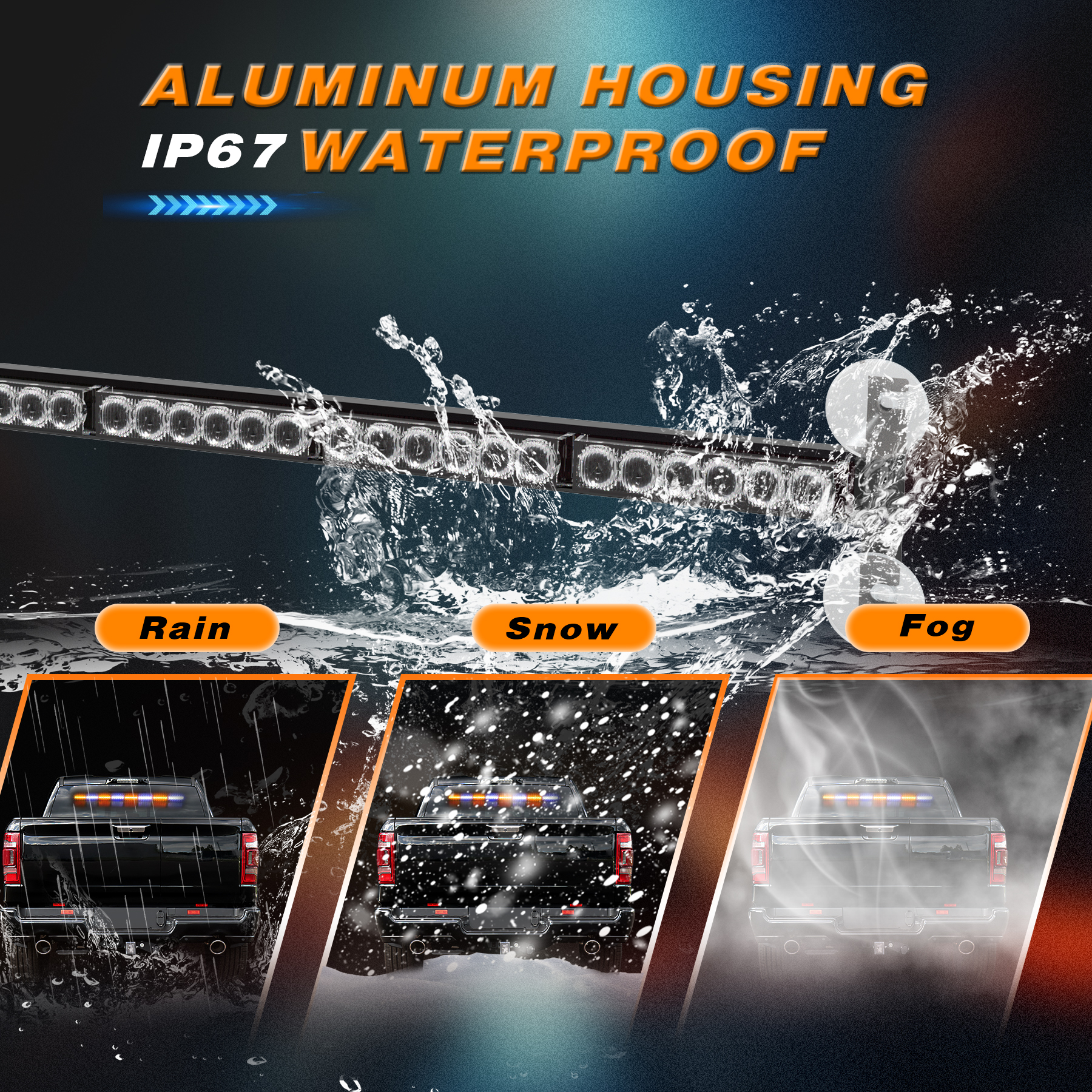 [Reliability] The waterproof level of the amber white strobe light bar can reach IP67,ensuring sealing and water resistance,and can be used normally even in adverse weather conditions