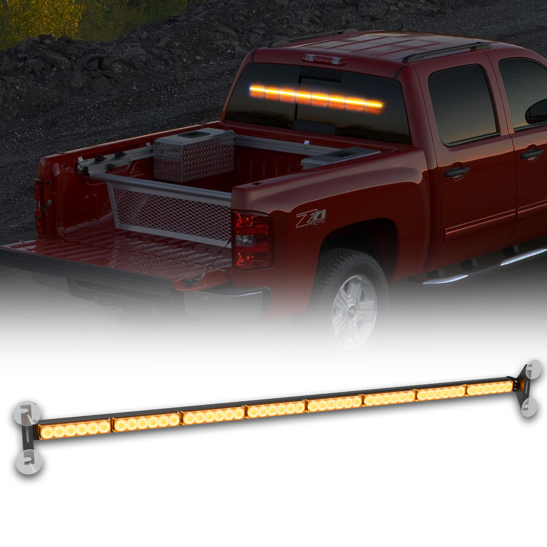 [Versatile] Safety strobe light bar can be adapted not only for different vehicles such as trucks,safety vehicles, snow plows, trailers and tractors.And it can be installed in different locations on the car,such as the interior front/rear windshield, sun visor,deck and dashboard,and even the exterior roof lights.