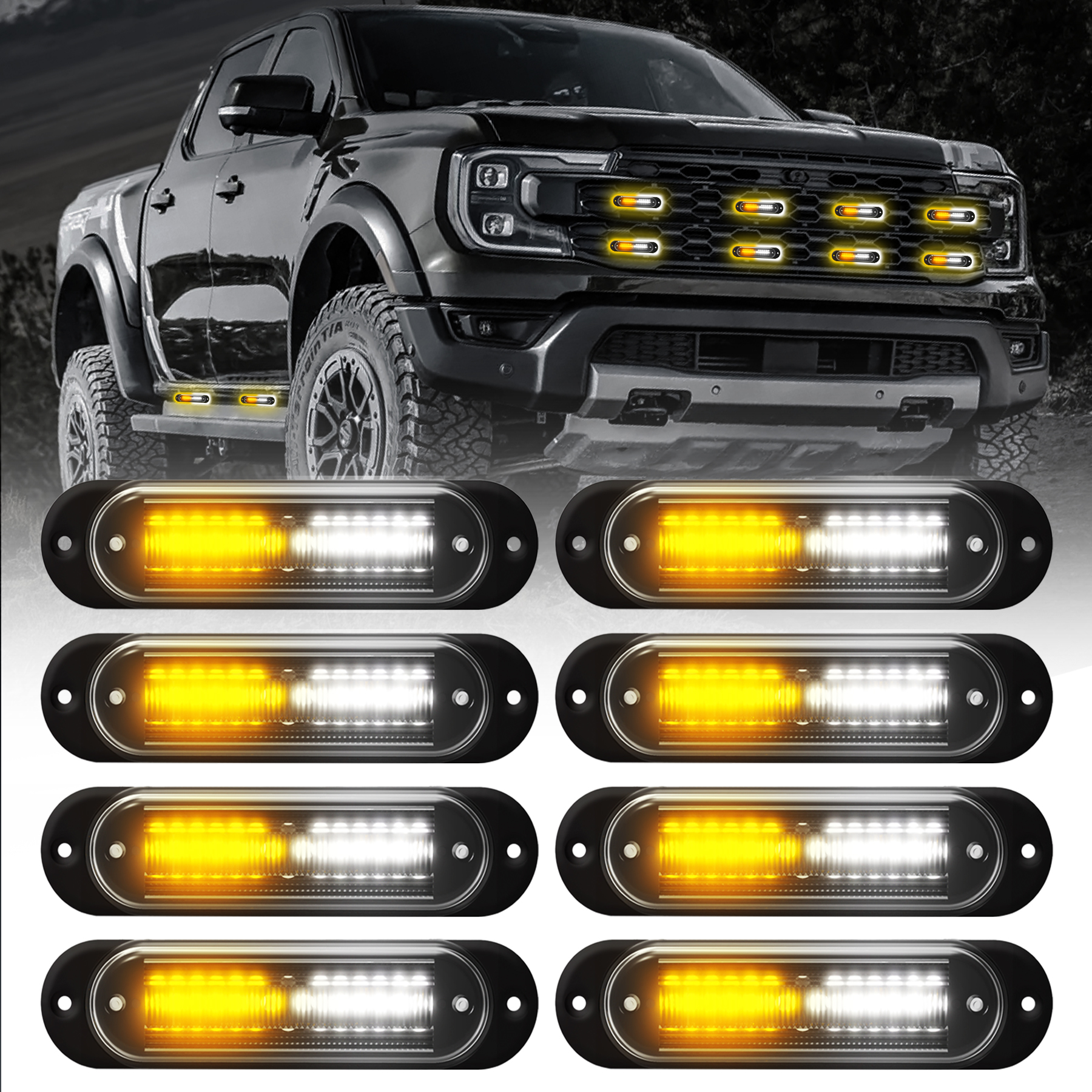 【Super Visibility】8Pcs sync feature emergency amber white strobe grille light are composed of 8 single row 12 high-quality LED chips, which can emit bright illumination even during the day and night, ensuring your driving safety.