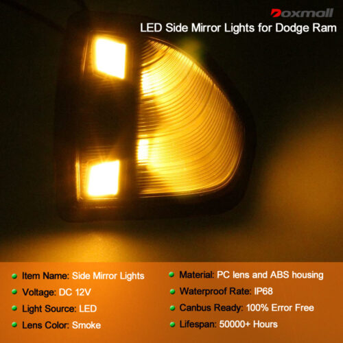 - Fitment: Doxmall led side mirror puddle lights are compatible with 2010 2011 2012 2013 2014 2015 2016 2017 2018 2019 2020 2021 Dodge Ram 1500, 2010-2019 Dodge Ram 2500 3500, 2011-2018 Dodge Ram 4500 5500. Please confirm these lights can fit your vehicle before purchasing.